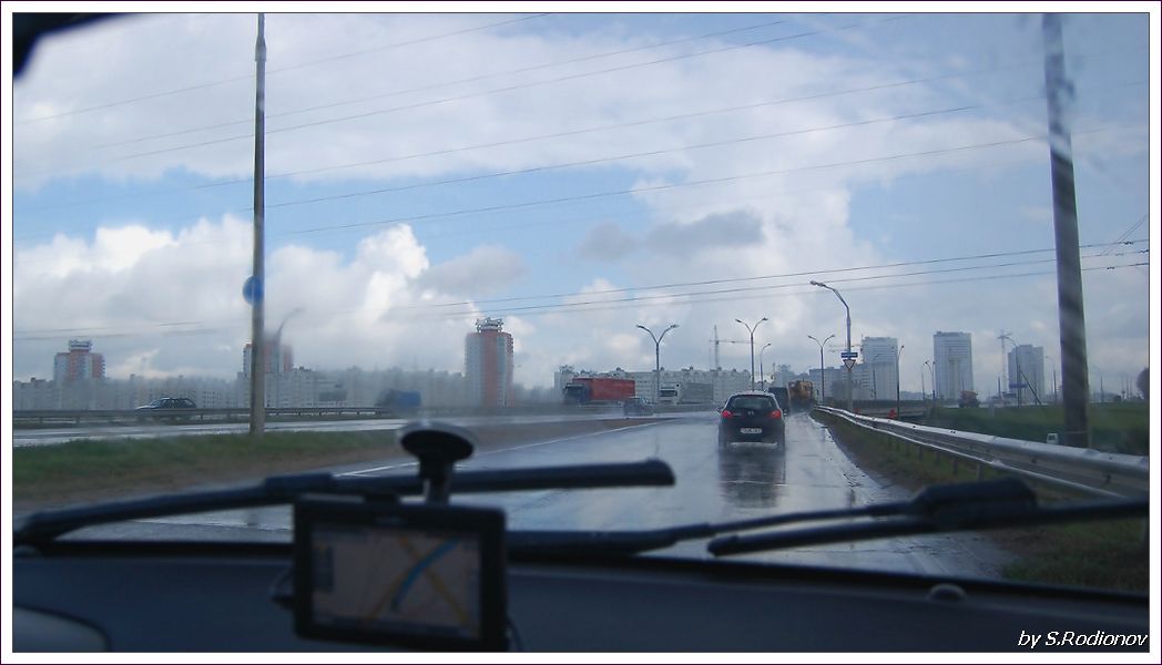 На фото справа вверху: свернул с окружной на Кунцевщину и полил дождь.