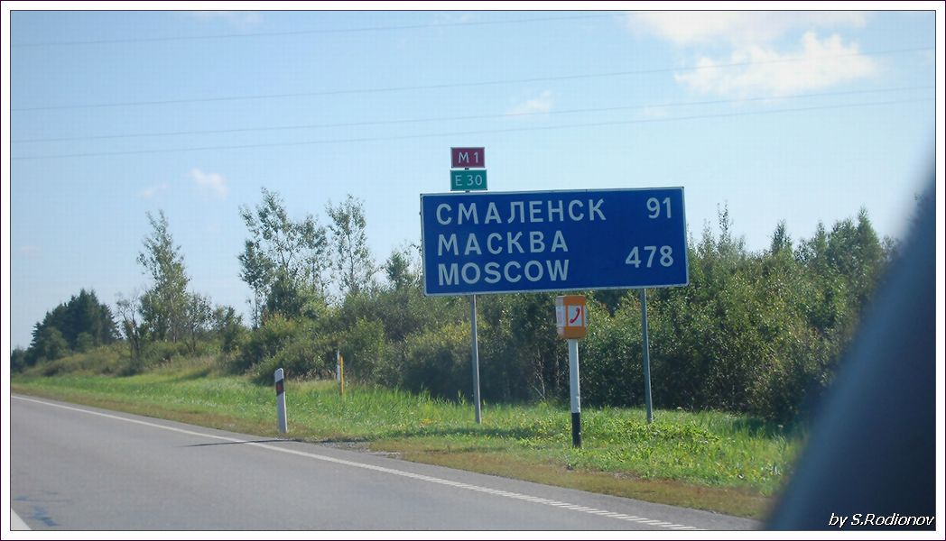 По России: Кубинка, Можайск, Гагарин, Вязьма, Ярцево, Смоленск.