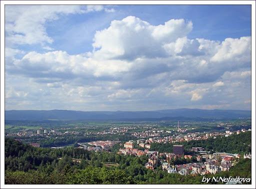 На фото: с близлежащего холма открывается великолепный вид, позволяющий оценить всю красоту и уют Карловых Вар.