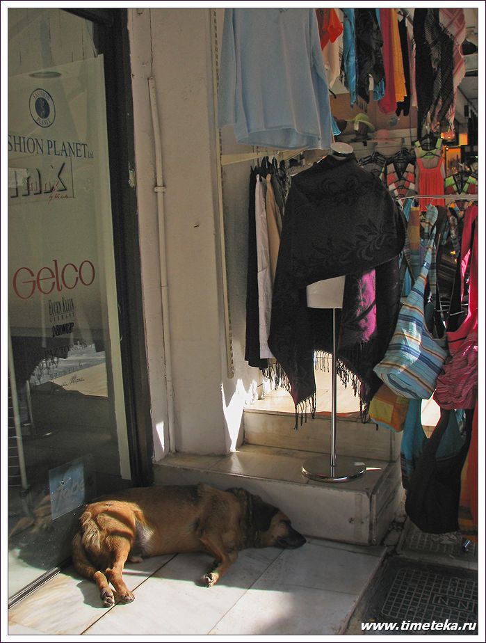 Так вот, бродя по Афинам с фотоаппаратом, заметил, что вокруг много собак. Не буду их сравнивать со священными индийскими коровами, но видел я их тут много, повсеместно и в разное время суток: безмятежно спящих, в меру упитанных, к тому же их тут никто не трогает. Можете убедиться сами на этох фото: