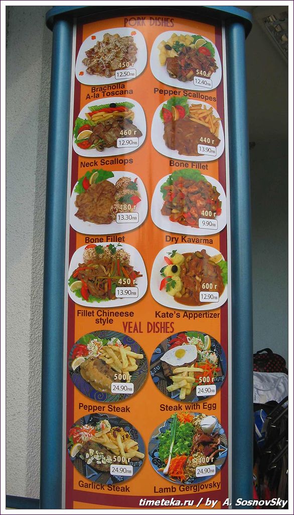 Продолжаем рассказывать о том, что предлагает для туристов болгарское побережье Солнечного Берега в кулинарном плане. Взглянув на эти фото, уважаемый читатель может сам удостовериться в доступности цен обычного ресторана.