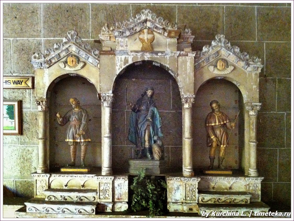 На фото внизу слева и в центре: внутренний интерьер католической церкви.