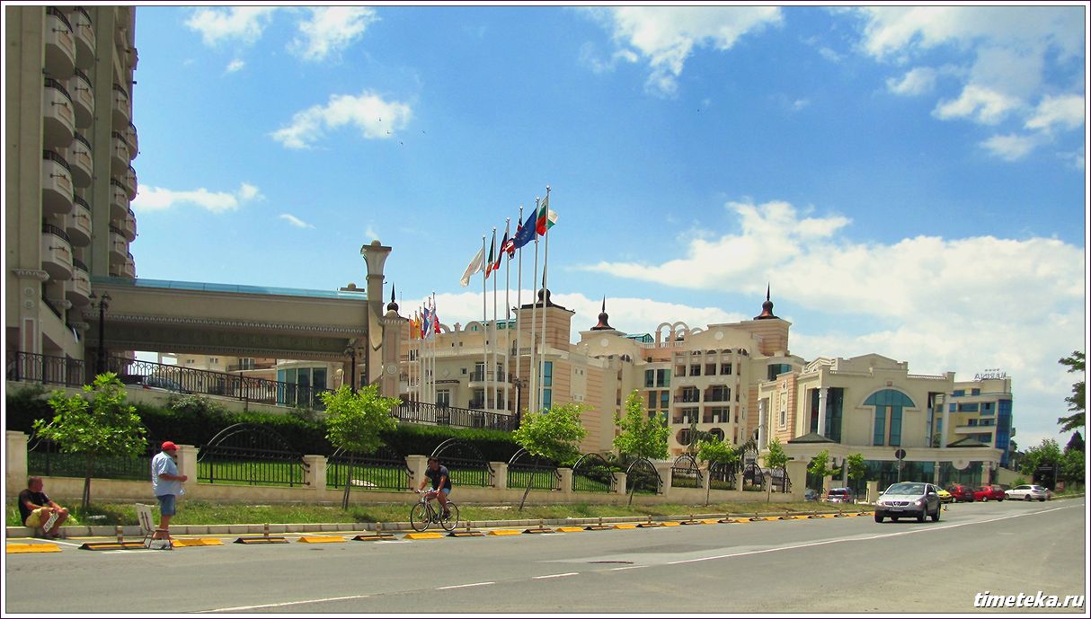 Надо сказать, что в Поморие, помимо отелей, непосредственно находящихся на полуострове, есть фешенебельные отели (фото слева), распложенные на материке, неподалеку от монастыря Святого Георгия.