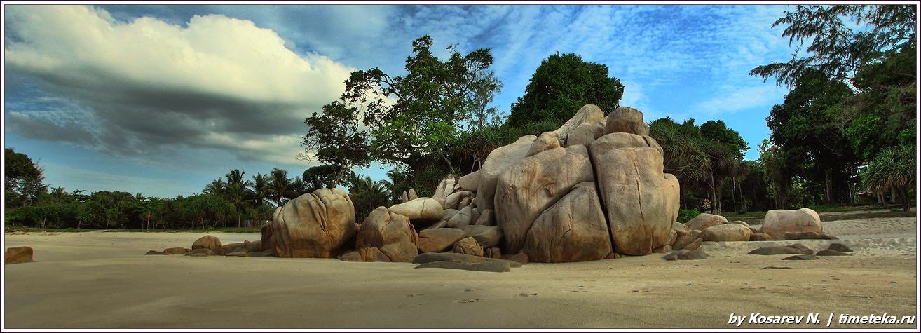 Непосредственно вокруг отеля – ухоженная территория, с лужайками и клумбами. От отеля до пляжа надо пройти метров двести. Пляж — полоса с мельчайшим белым песком, метров тридцать шириной, поросший пальмовыми деревьями, к которым вплотную примыкают джунгли. Дно также песчаное и пологое. Вода чистая, теплая, как парное молоко. Неподалеку от отеля есть еще и виллы, утопающие в зелени с собственными небольшими бассейнами.