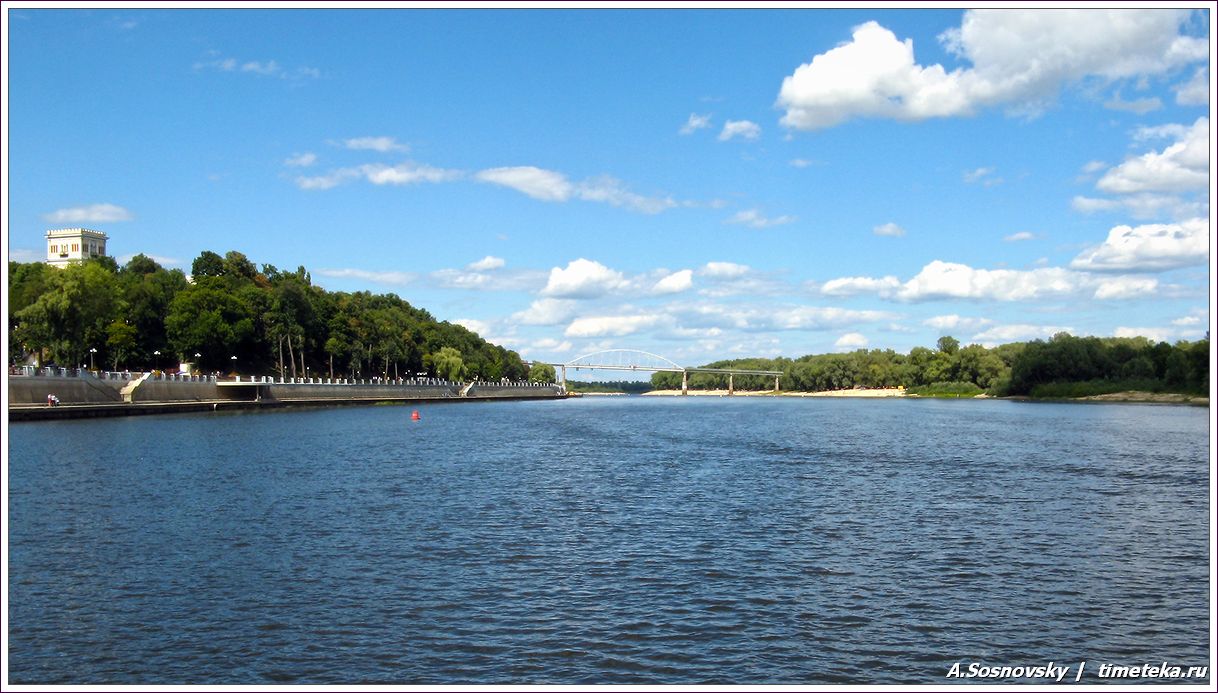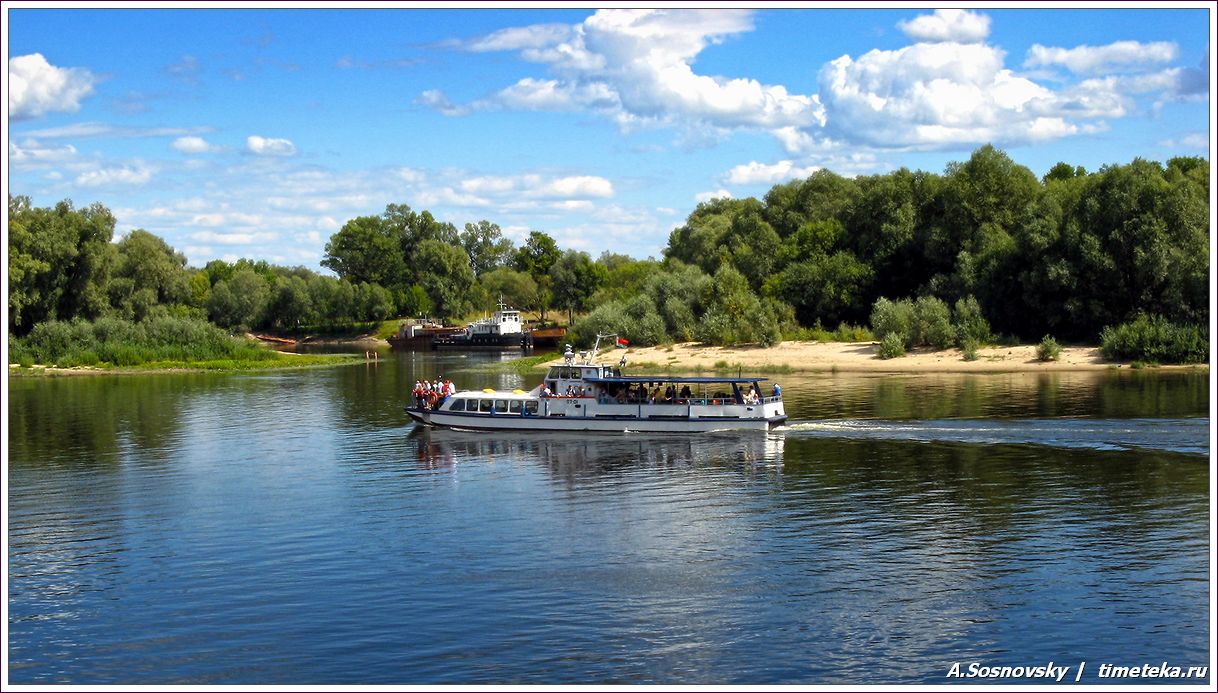 После прогулки по парку мы спустились к реке Сож — прокатиться на катере.